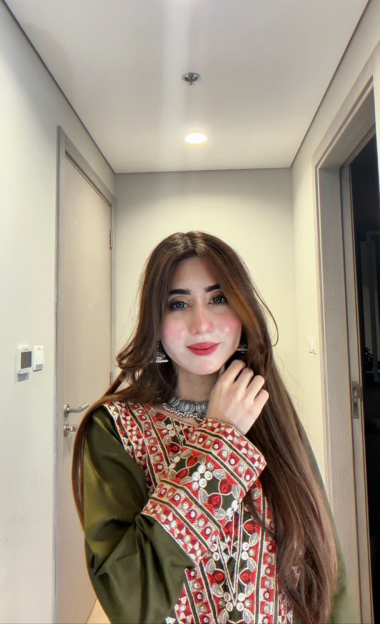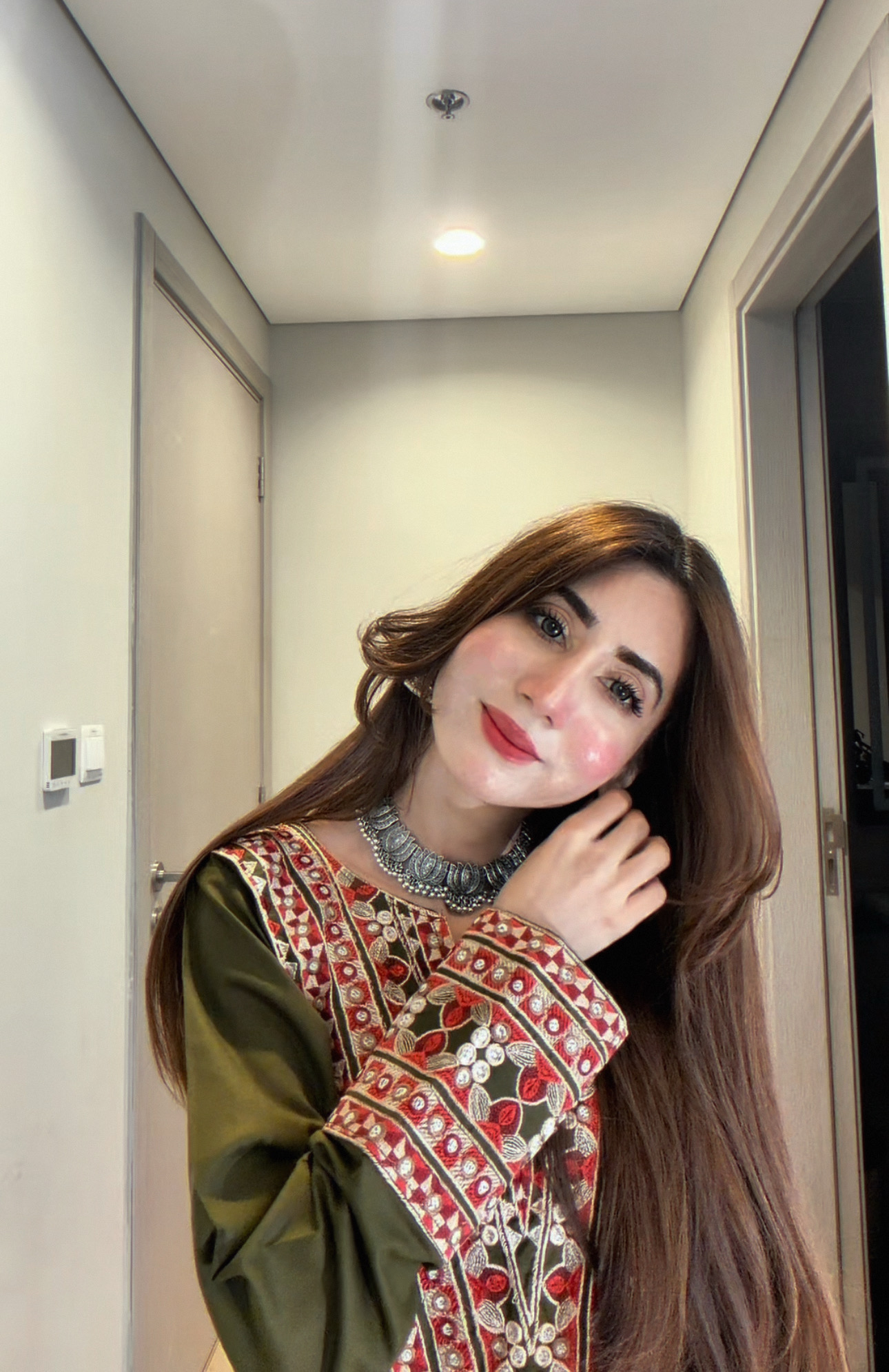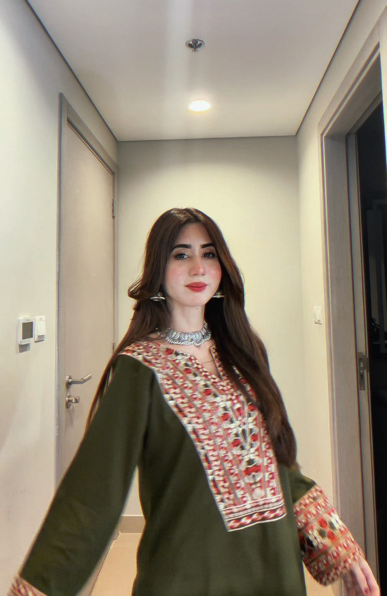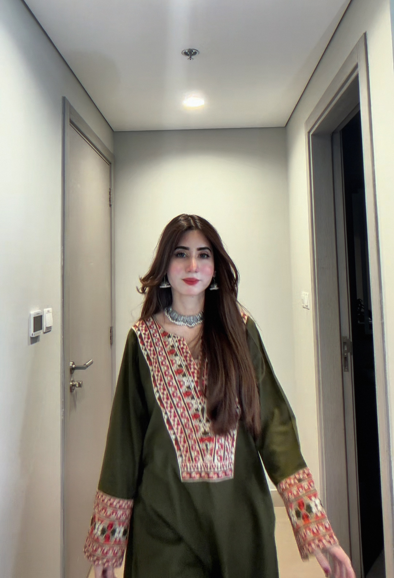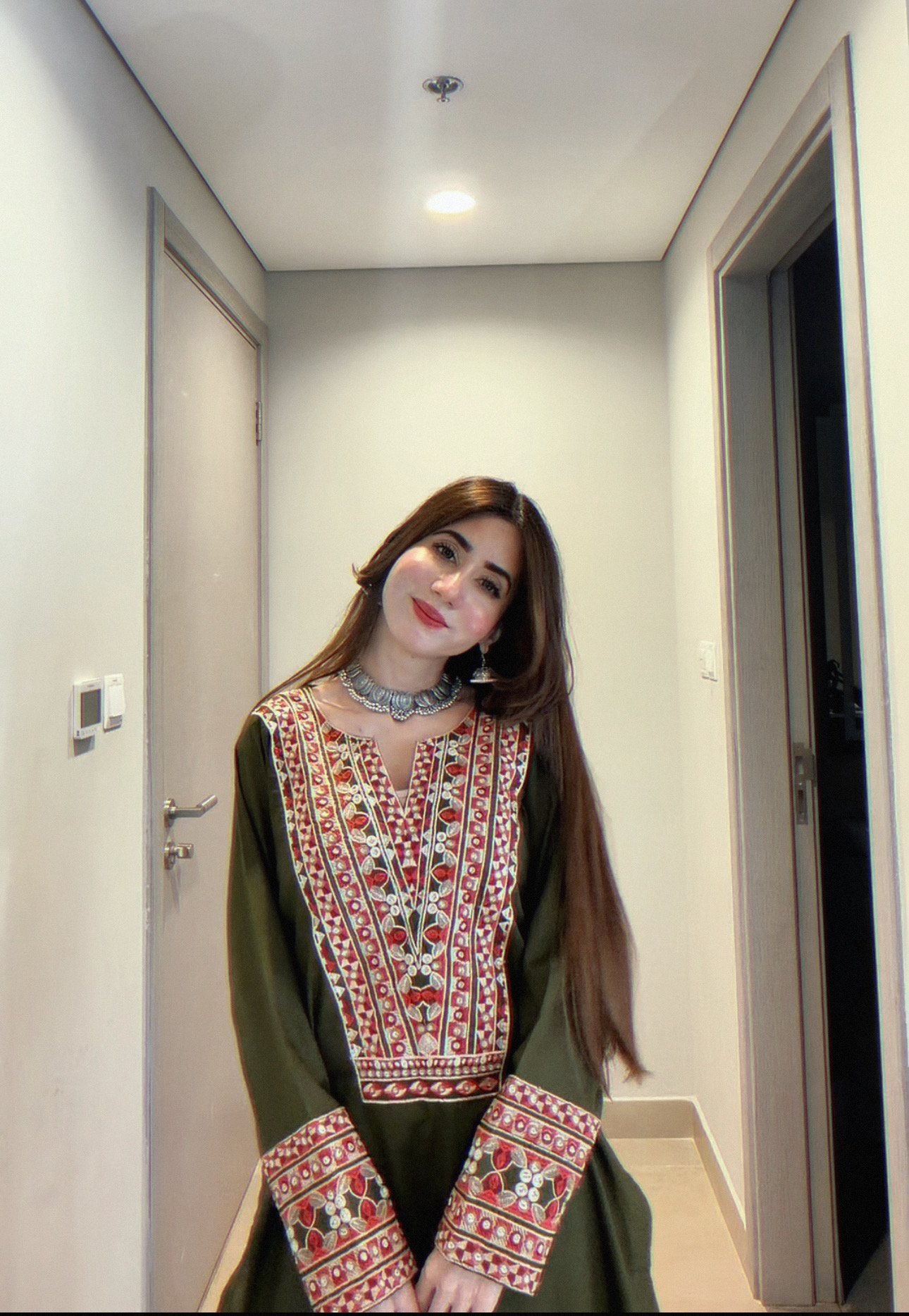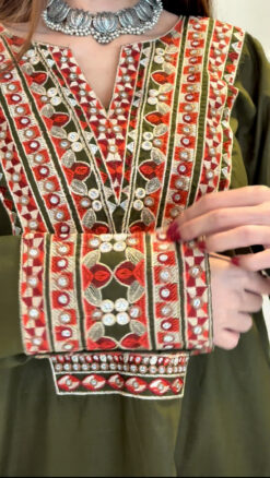 * Heavy embroidery on neckline